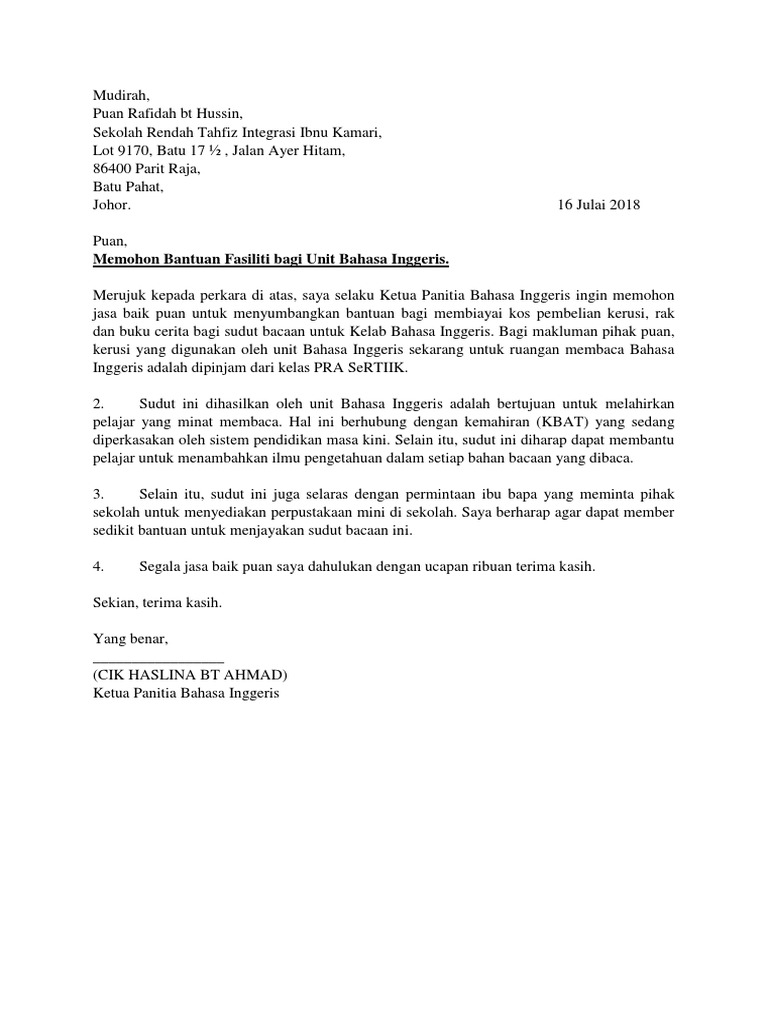 Contoh Surat Kiriman Rasmi Bahasa Inggeris Spm Kertas Otosection